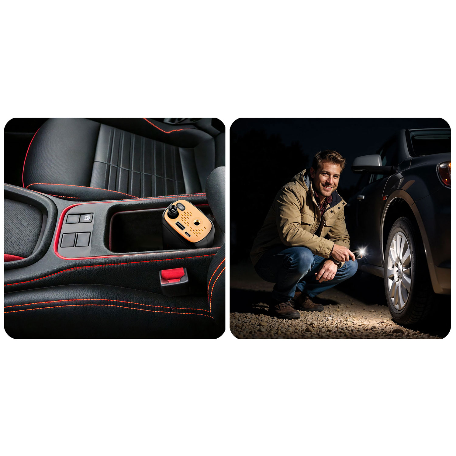 Kaasaskantav, juhtmevaba ja hõlpsasti kasutatav – ideaalne igapäevaseks kasutamiseks, teel olles ja garaažis. Sisseehitatud taskulamp muudab selle kasulikuks ka hädaolukordades pimedas.