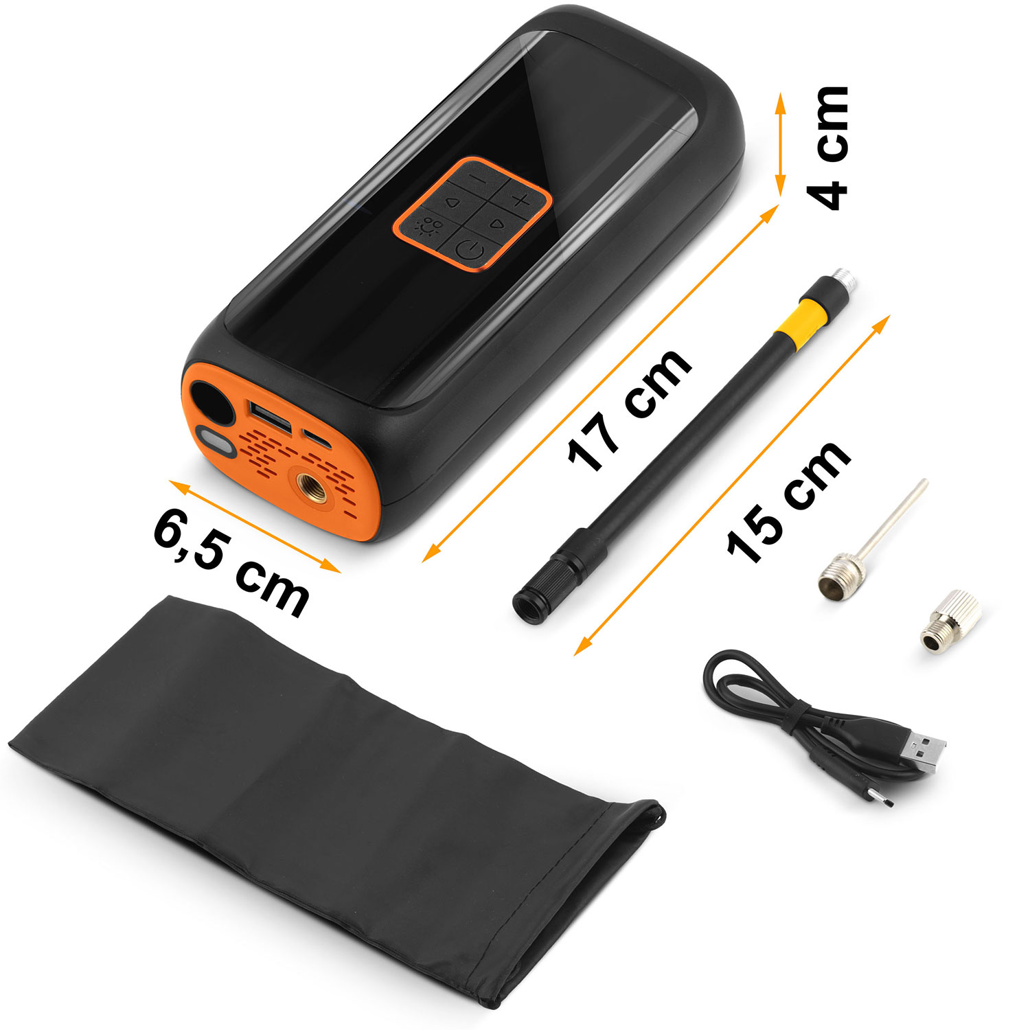 Komplektis: õhuvoolik, kuulnõel, Presta otsik, USB-C kaabel, ümbris