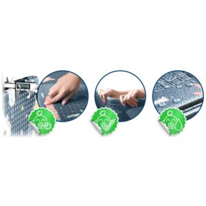 Tänu spetsiaalsele reljeeftrükile saab matti korduvalt kokku voltida ilma kahjustusteta.