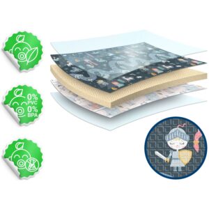 Valmistatud lõhnatust, kvaliteetsest XPE-vahust, mis on teie pisikesele ohutu. Eriti paks vaht (1 cm!) pehmendab kukkumist kõvadel põrandatel.