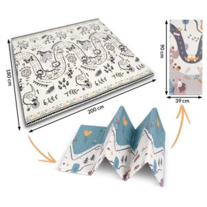 See ainulaadne, suur ja kokkupandav matt mõõtudega 200×180 cm pakub palju praktilisi kasutusvõimalusi. See pakub teie lapsele mugavust mängimise ja roomamise õppimise ajal!