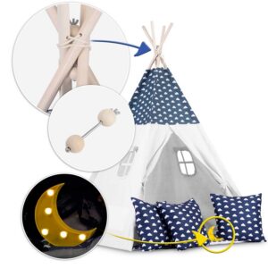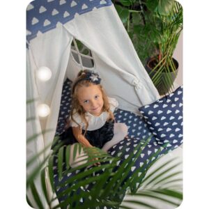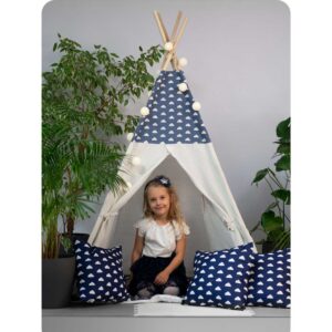 Laste tipii-telk pärja ja tuledega – tumesinine pilvedega