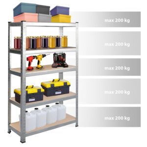 Riiul koosneb 5 riiulist, millele saab virnastada tooteid, kaste või kodumasinaid, maksimaalse kandevõimega kuni 200 kg riiuli kohta.