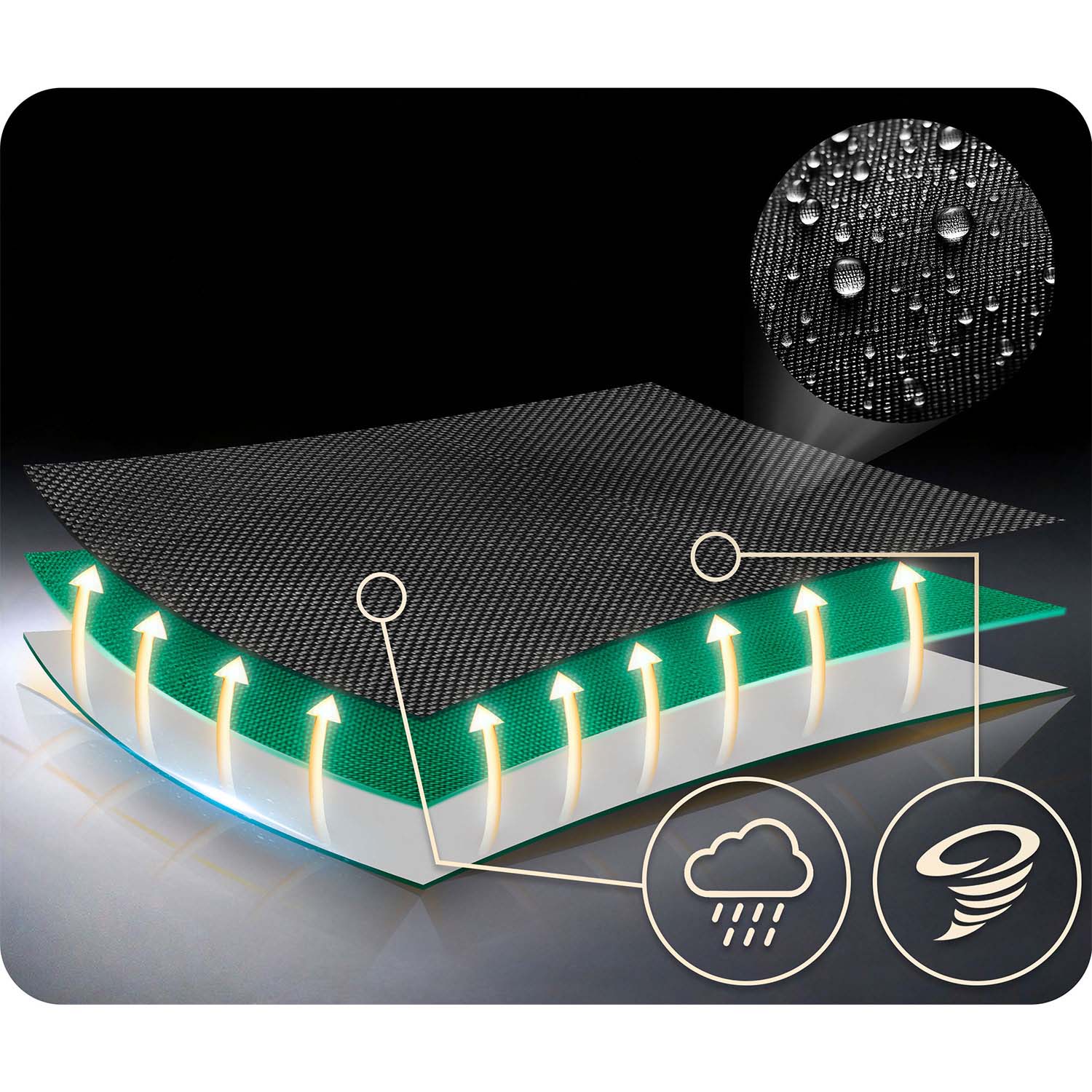 600D Oxford polüesterist iste on veekindel ja kergesti puhastatav.
