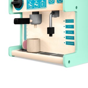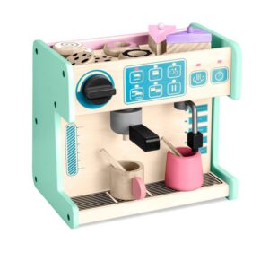 Esitleme fantastilist lastele mõeldud mänguasja, millel on arvukalt tarvikuid ja sisustuselemente, mis meenutavad päris asju, kuid on valmistatud ainult looduslikest materjalidest. Pagariäri/kohviku komplektis on arvukalt lisatarvikuid: 2 šokolaadiküpsist, 2 kaneelirulli, 2 sõõrikut, 2 koogiviilu, 1 espressomasina portafilter, 2 segamispulka ja 2 tassi (käepidemetega ja ilma).