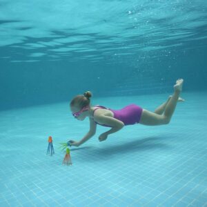 Igal kaheksajalal on sisseehitatud raskus, mis paneb selle vette visates põhja vajuma. Teie lapse ülesanne on need välja tuua – suurepärane tegevus, mis arendab osavust, koordinatsiooni ja enesekindlust vees.